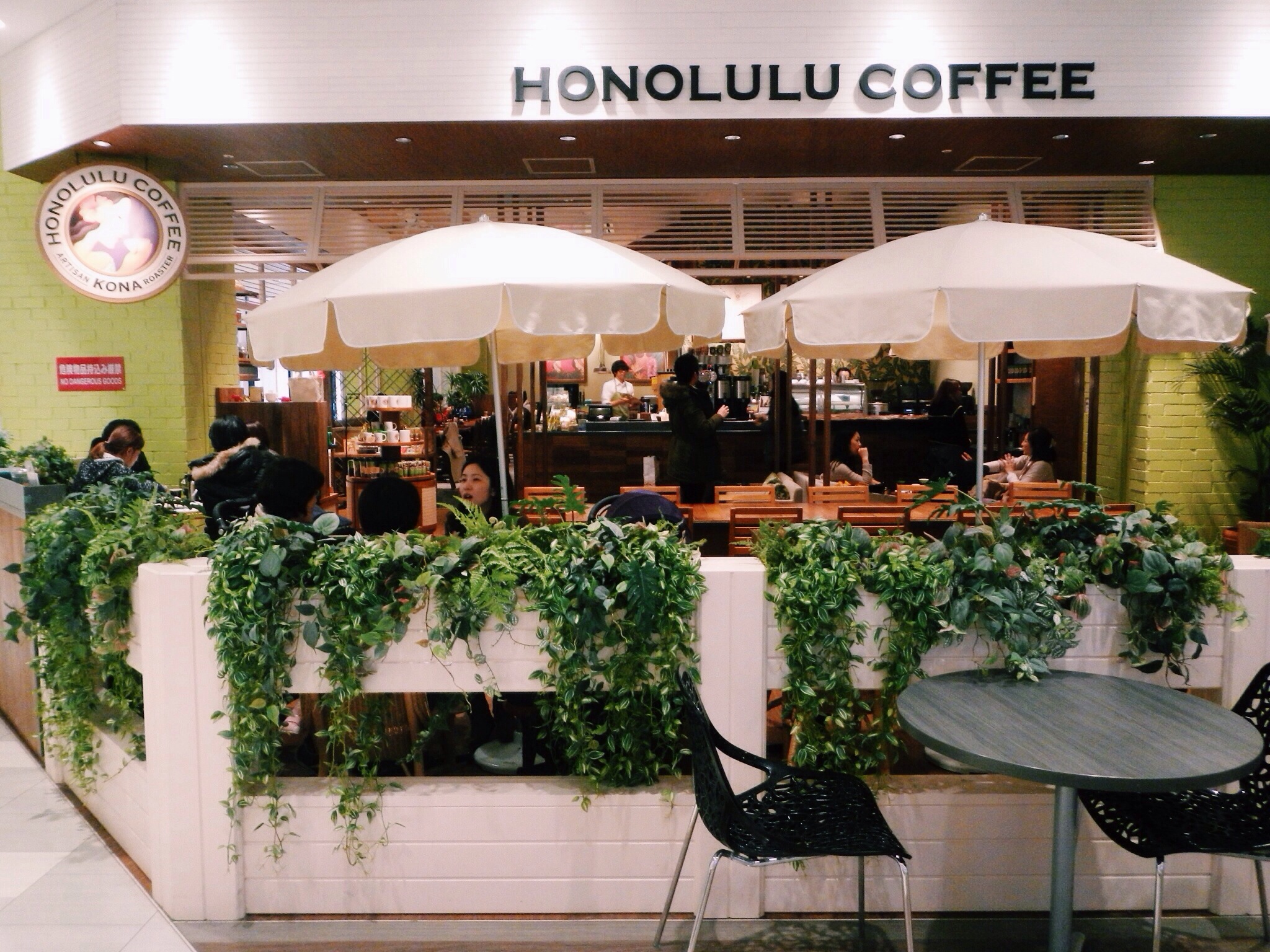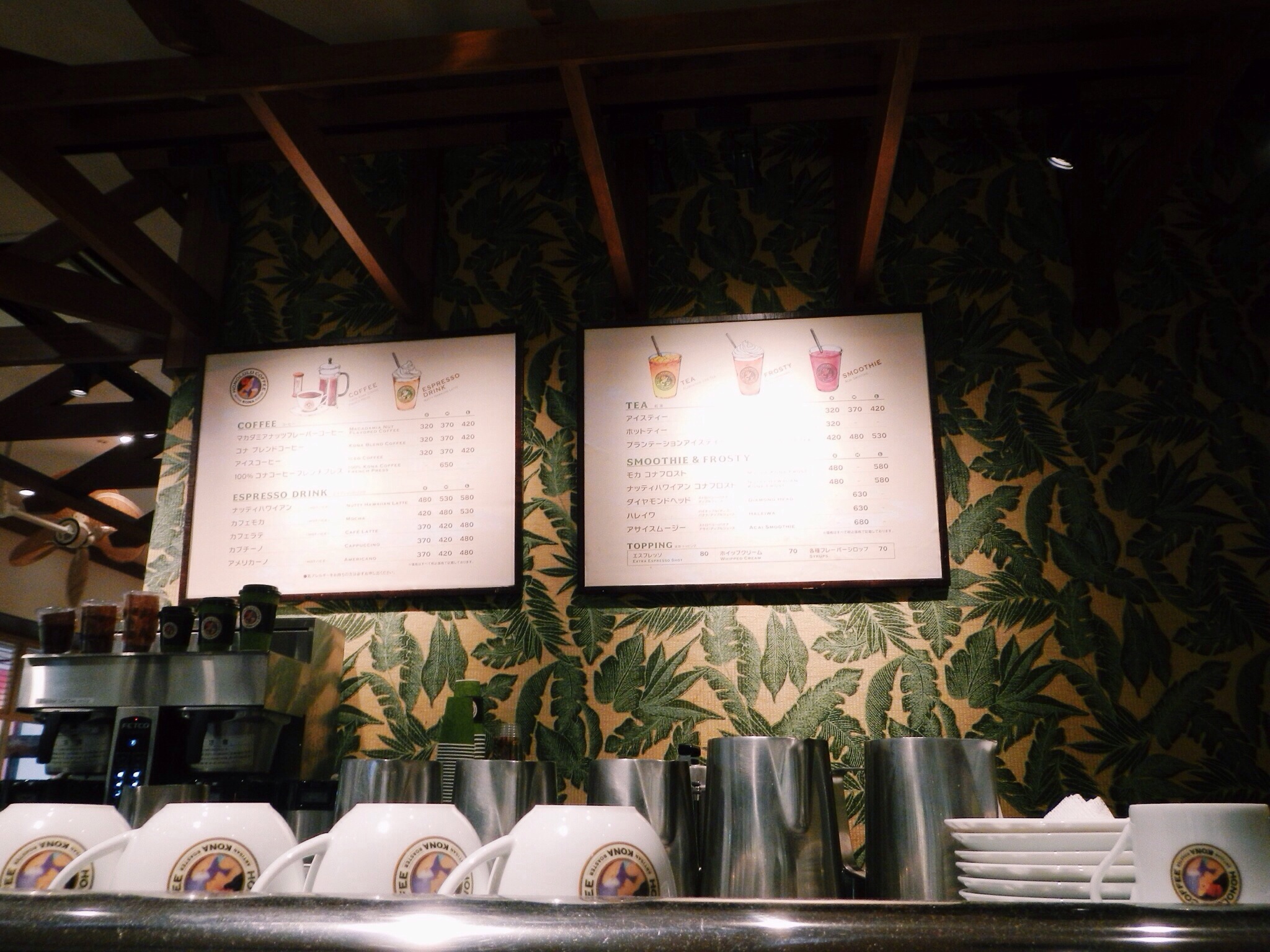 Afternoon coffee at Honolulu Café after a hearty sushi lunch. This pretty café from Hawaii is located at the food and restaurants level of Diver City, Odaiba. I had the Nutty Hawaiian Kona Frost (ナティハワイアン コナフロスト), a frosty blend of hazelnut and macadamia with a tinge of coconut juice and some espresso. Really good.