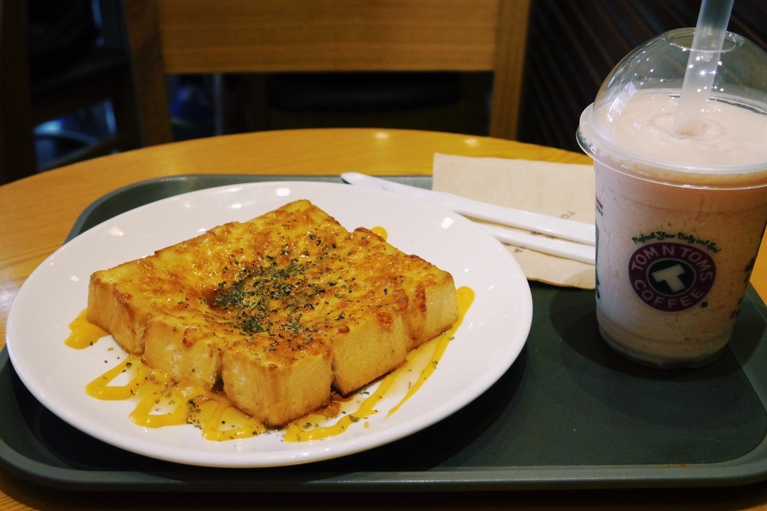 Meddling with my baby Lumix GF6 on a rainy afternoon at Icon Village led to a series of repetitive shots on food & various cafe knick knacks. When you have a long list of books you wanna read, escape to Tom N Toms, closest substitute to Seoul cafes. Cold weather never deterred me from an ice-cold strawberry smoothie! On the plus side, lunch was my favorite Tom n Toms honey and cheese thick toast.