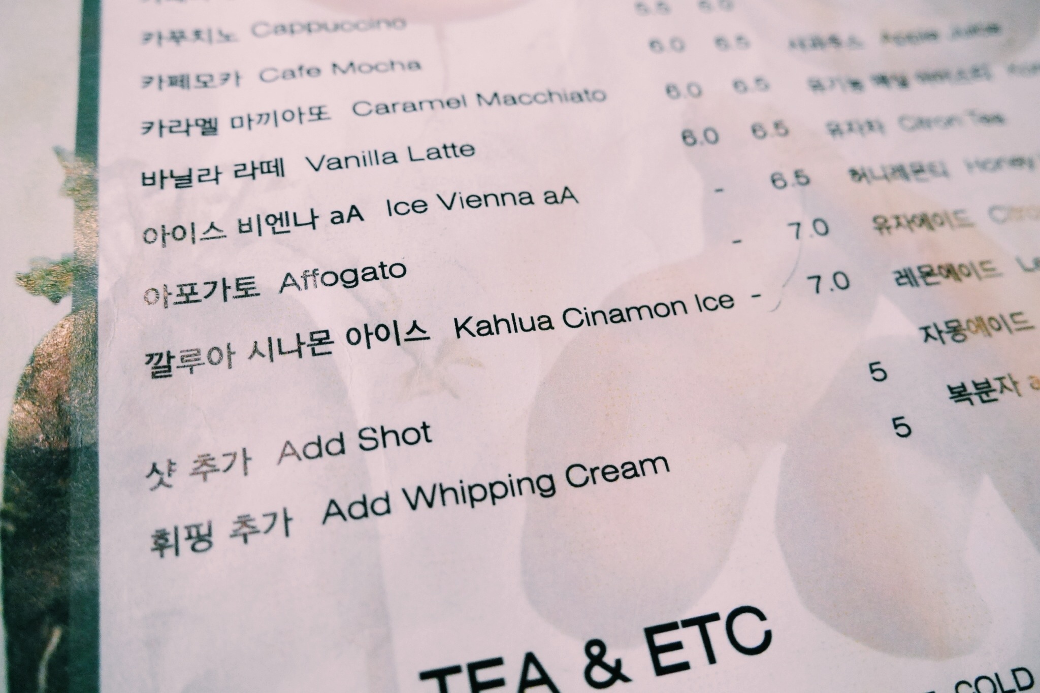 My dream came true in the form of Kahlua Cinnamon Ice – coffee with Kahlua topped with milk, cinnamon flavoured syrup and cinnamon flakes! At a reasonable price of 6,500 KRW, it totally made my day.