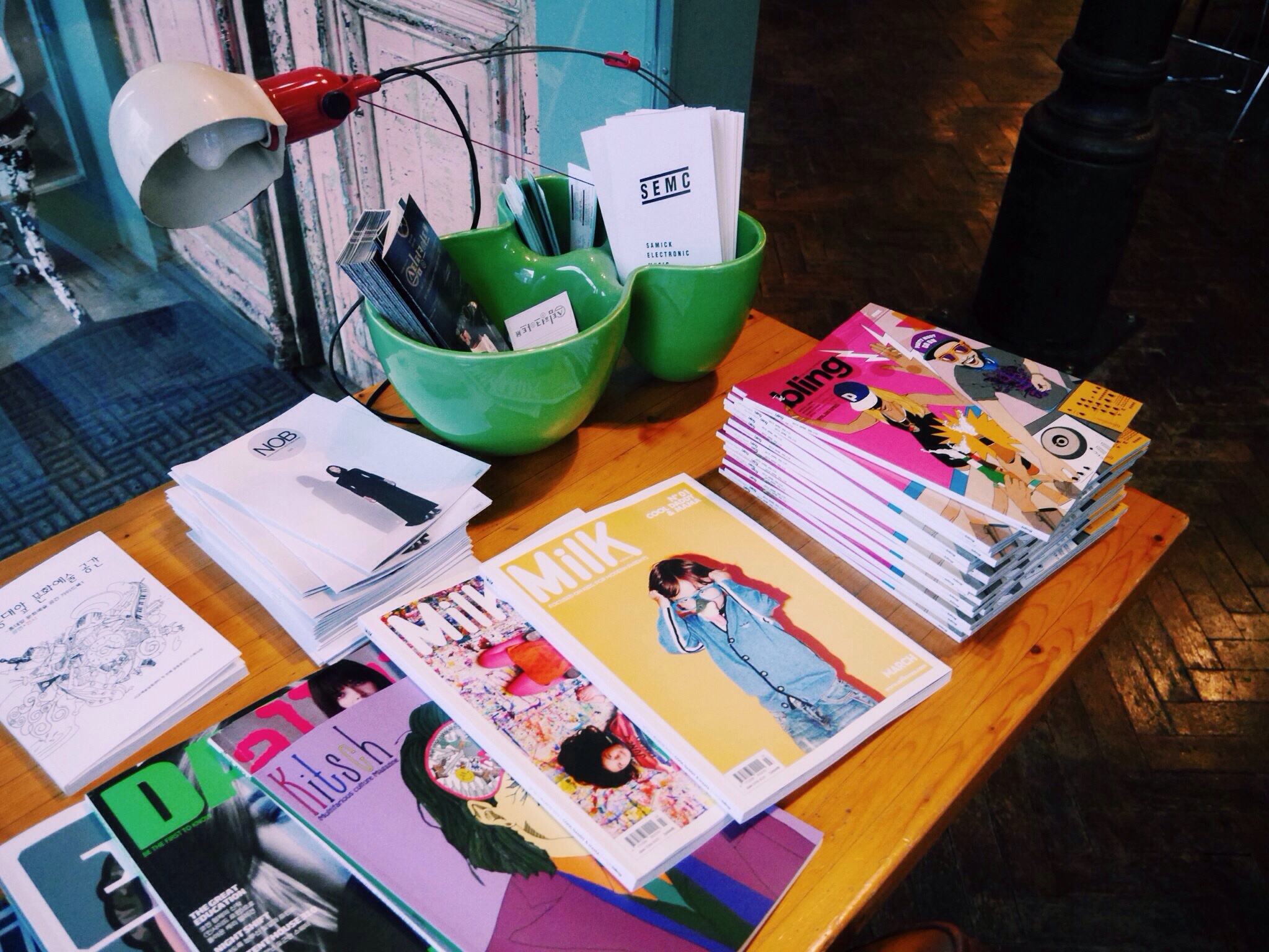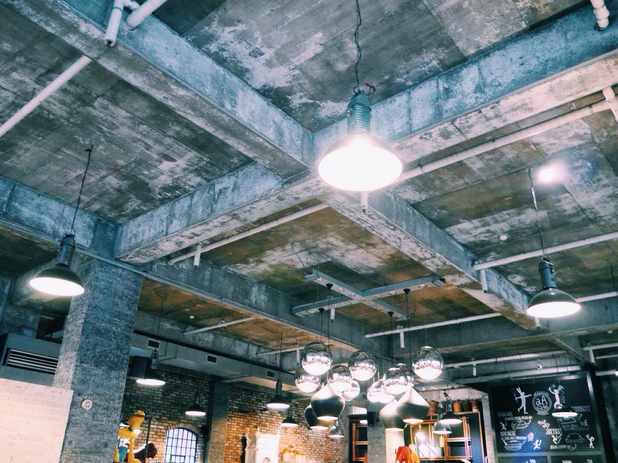 The interior seems pretty bright over here because I’d adjusted the colour but it’s actually pretty dark inside. The walls are a grungy mix washed-out greys and chipped tiles, which I really loved because stepping alone into Cafe aA felt a tad spooky as if I’m paying a visit to a haunted house. Various elements funkified the dark atmosphere – designer coffee-table books and artistic pamphlets.