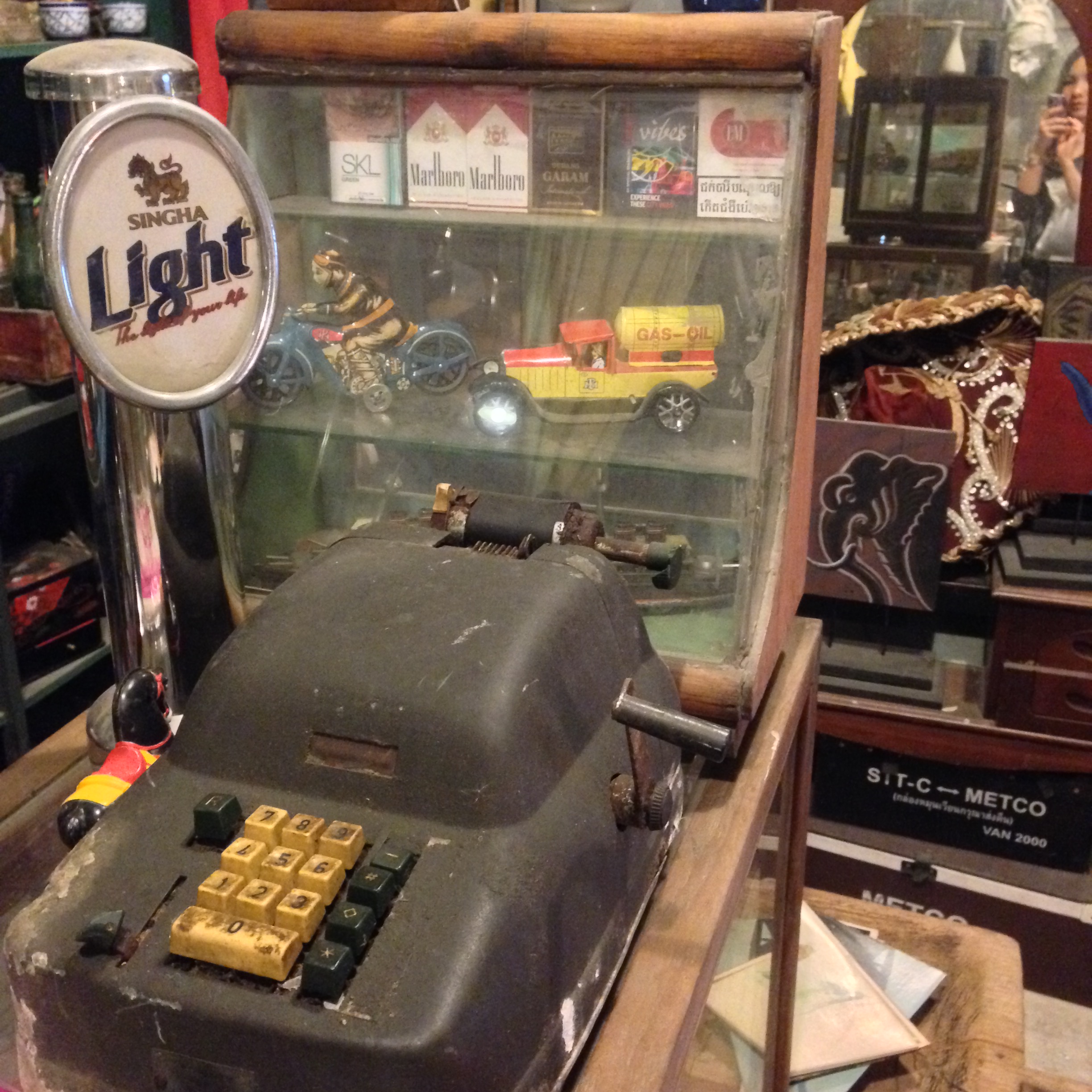 Talad Rod Fai, Bangkok, is an open-air bazaar peddling an insane array of vintage collectables, quirky kitsch and memorabilia from yesteryear. Since its move in 2013 due to an expansion of the BTS Skytrain line, its reappearance at the new site accommodated a bigger, more international crowd. I loved the old Rod Fai next to the train tracks, where shop-owners displayed their wares on floors or did business right out of 1950s Cadillacs. The new locale is posh, less rugged than before, while retaining signature vintage elements.