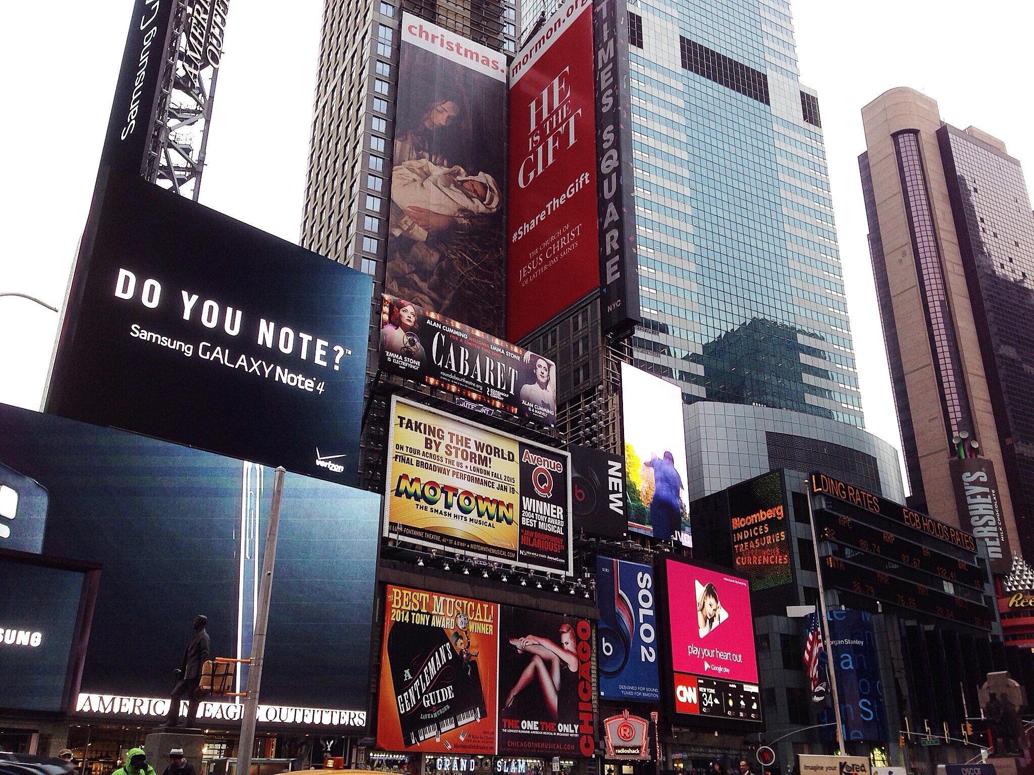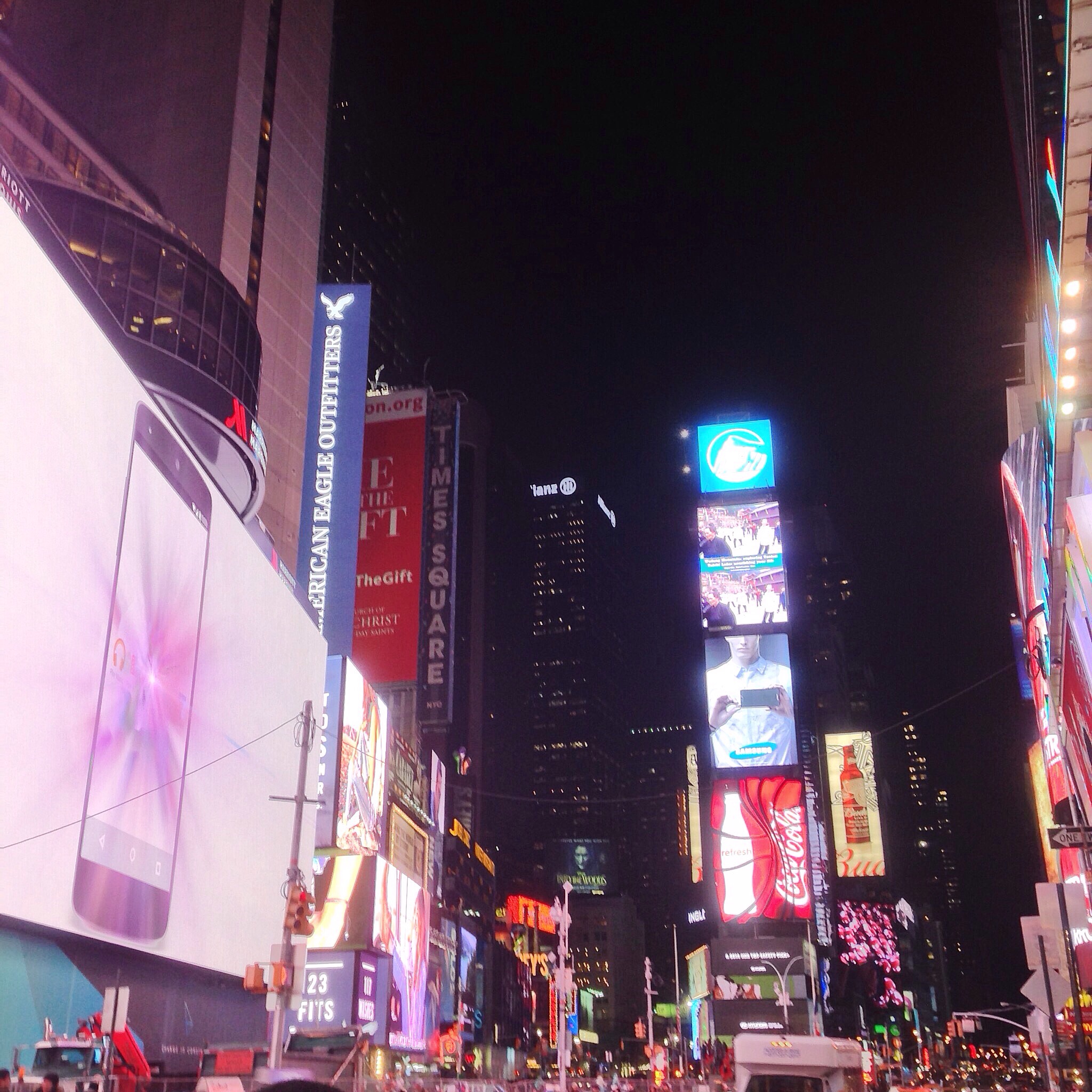In the day, Times Square is incredibly, vividly lit. In the night, it’s not so different. Shopping from late evening on, I didn’t even notice that daylight was gone because the billboards were so intensely bright that they lit up almost the entire sky if you were to stand right in the middle of the streets. I’m reminded again of why NYC is the City that Truly Never Sleeps.