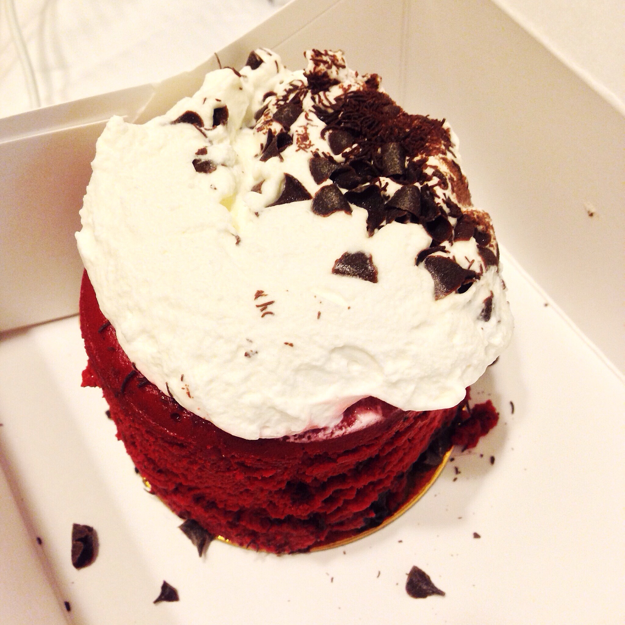 I’ve always been a huge fan of red velvet, but this is a whole new level of velvety goodness. It was so soft and creamy, that there was nothing cake-y about it at all. Just melt-in-your-mouth smooth satiny velvet, made red with cocoa, vanilla and “a little southern mystery”, topped with special whipped vanilla icing and chocolate chips.