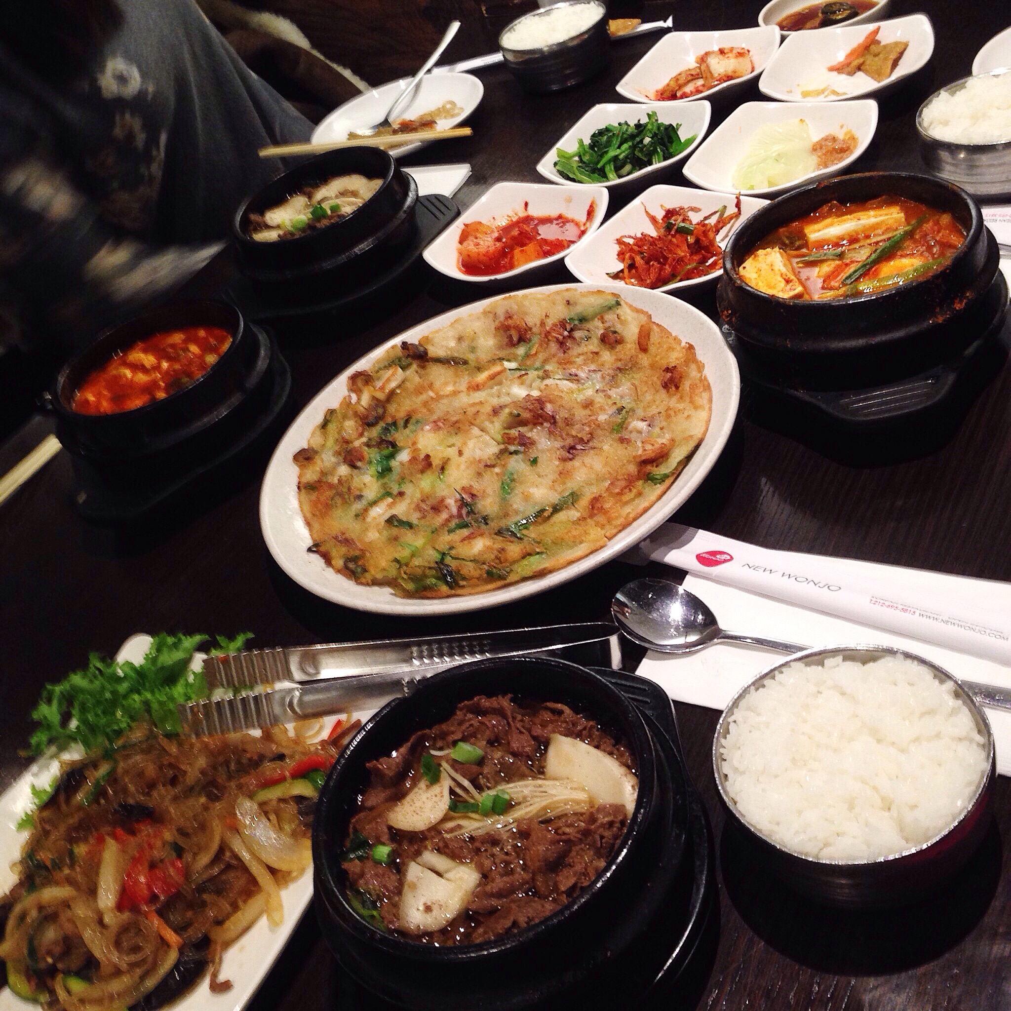 Straight off our flight, we headed for Koreatown in search of piping hot and spicy Korean food! Decided on New Wonjo because it looked spanking clean and boasts a really strong heater (we felt the emanating warmth just by walking past). Not once during our entire meal did we regret our choice. We had an amazing meal: Bean paste stew (된장찌개), Spicy Tofu Stew (순두부찌개), Short Rib Soup (갈비탕), Beef Glass Noodles (잡채), Rice Cakes (떡볶이), and Seafood Pancake (해물파전 ). Daresay this was one of the best Korean restaurants I’ve been to outside of Seoul.