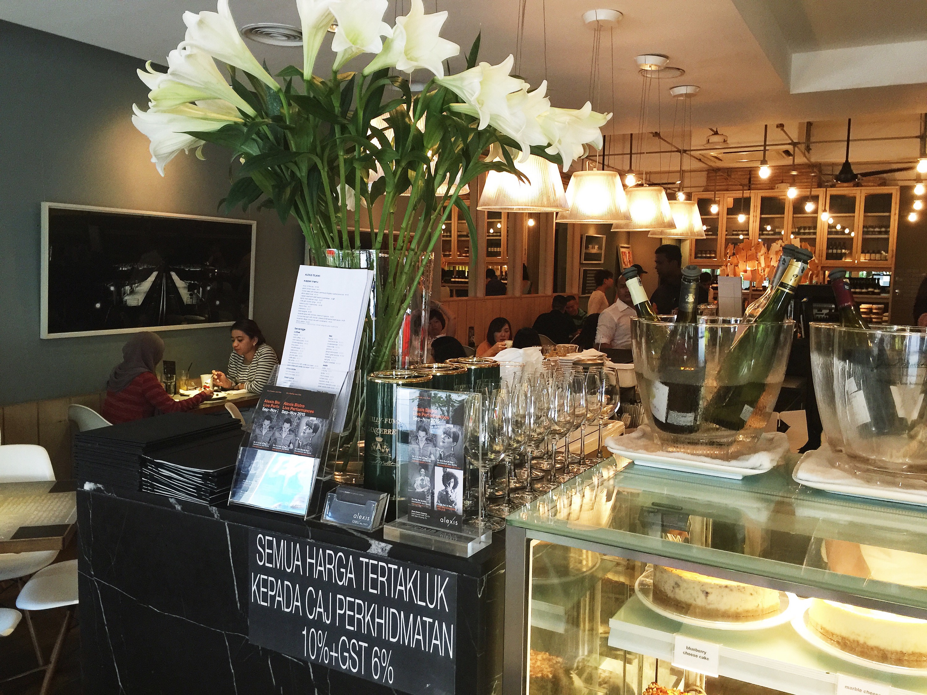 With tasteful decor, scattered art pieces, white chairs and pale wood tables, Alexis needed little else in their concept to be a decent chill-out spot for afternoon tea. While the wall of wine bottles added a layer of sophistication, it was a tad lacking in the bar/pub factor. Nonetheless I loved how they stacked up all their collection so patrons could literally check the bottles out.